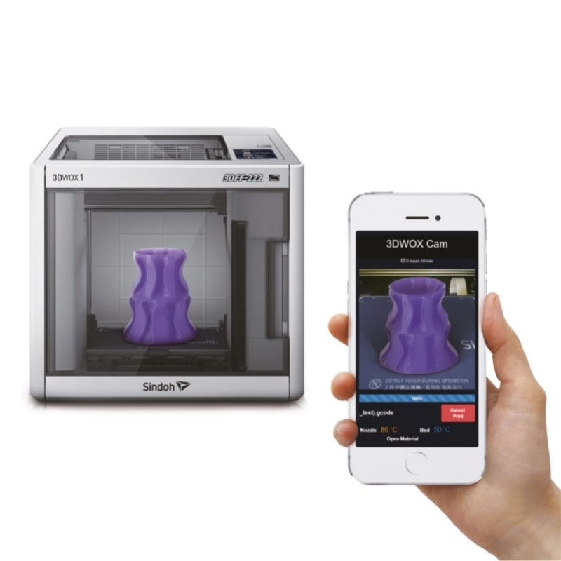 A camera and LED light are mounted for remotely monitoring the build process. By simply installing a mobile app to your smartphone or tablet computer, it is possible to check the build progress from anywhere you desire.